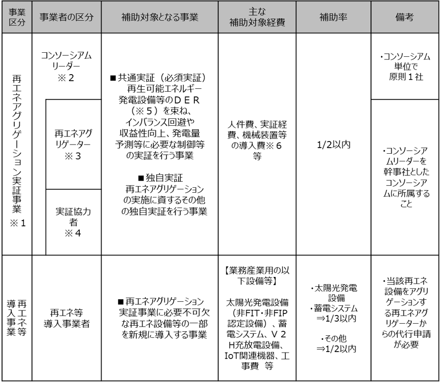 - ※2:再エネアグリゲーター及び実証協力者を束ねたコンソーシアム幹事者であり、当該コンソーシアム内で実施する事業の取りまとめを行う事業者。再エネアグリゲーター、実証協力者のどちらでもコンソーシアムリーダーになることが可能。