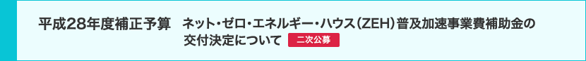 - > 平成28年度補正予算 ネット・ゼロ・エネルギー・ハウス(ZEH)普及加速事業費補助金