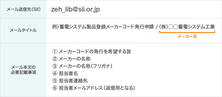 メーカーコード発行申請期間内に、メール送信先(SII)にメーカーコードの発行を希望する旨等を連絡してください。